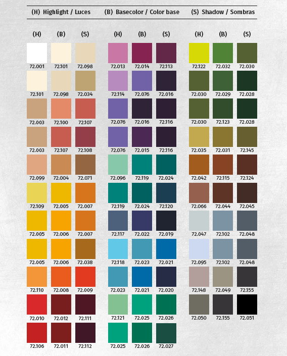 Скачать палитру можно тут https://www.vallejoacrylics.com/wp-content/uploads/2023/04/CC266-Game_Color-NewIC-Rev00_.pdf
